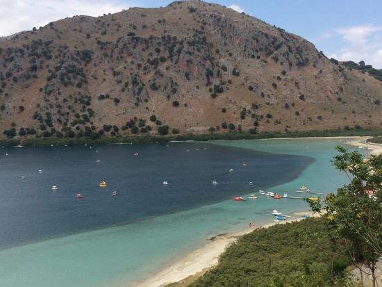 После обеда мы приехали на чудесное озеро Курнас. Виды - живописные. Красота, отдых, умиротворение. Уникально на этом озере практически всё. Это единственное пресноводное озеро на Крите. Такие запасы пресной воды очень важны для любой местности. Пресная вода здесь сладковатая на вкус, необыкновенно чистая, ведь питают озеро Курнас два подземных родника, которые проходят через карстовые породы. Один из них можно увидеть в конце августа, местные жители называют его «Амати», что означает «Глаз», второй же всегда скрыт под водой. Озеро дает начало реке Алмирос, которая течет мимо поселка Каврос и впадает в море. Нижняя точка озера почти на три метра ниже уровня моря. Оказывается, Курнас глубокий водоём. Глубина в некоторых частях водоема достигает больше 24 метров! Озеро Курнас – это еще и родной дом для большой колонии редкого вида черепах с цветным панцирем. Масса некоторых особей достигает 400 кг! Забавно наблюдать за кормлением этих животных: кушают они проворно, на обед им подают ово