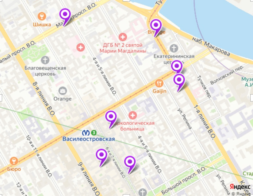 Выходим из "Академической лавки", поворачиваем направо и по 8-ой линии доходим до Малого проспекта, где поворачиваем тоже направо.