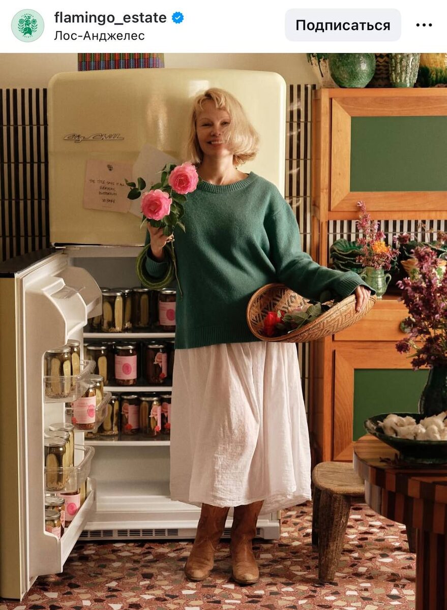 Маринованные огурцы обычно идут в комплекте с образом «закуски для настоящих мужиков». Но Памела Андерсон решила переписать сценарий — и сделала их предметом чистой эстетики 🤌🏼 10 августа она в коллаборации с Flamingo Estate запустила Pamela’s Pickles. Это лимитированная серия по рецепту её прабабушки Vie: роза, укроп, горчица, чеснок, розовый перец, гуахильо-чили и копчёная морская соль. Стоимость банки — $35–38, и все средства идут в California Wildlife Center, который занимается спасением и реабилитацией диких животных Калифорнии. Ставим лайк и надеемся увидеть в следующем году в Суздале на дне огурца 👍🏻 #кейс@bukhalovabrand