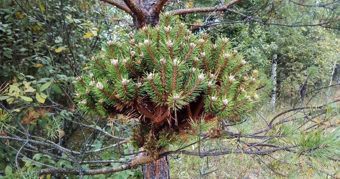 " Ведьминымы метлами" в народе называют интересные образования в кроне деревьев, похожие на шары или огромные гнезда. В старину считалось, что это проделки ведьм и разной нечистой силы. "Вот летит нечисть над лесом и заколдовывает деревья, на которых вырастают потом будущие "транспортные средства".