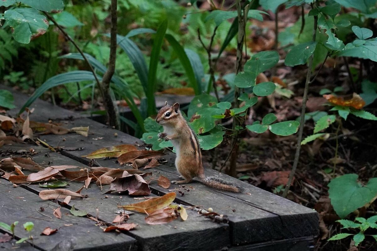 Бурундук инспектирует инфраструктуру экотропы «Тропой леопарда