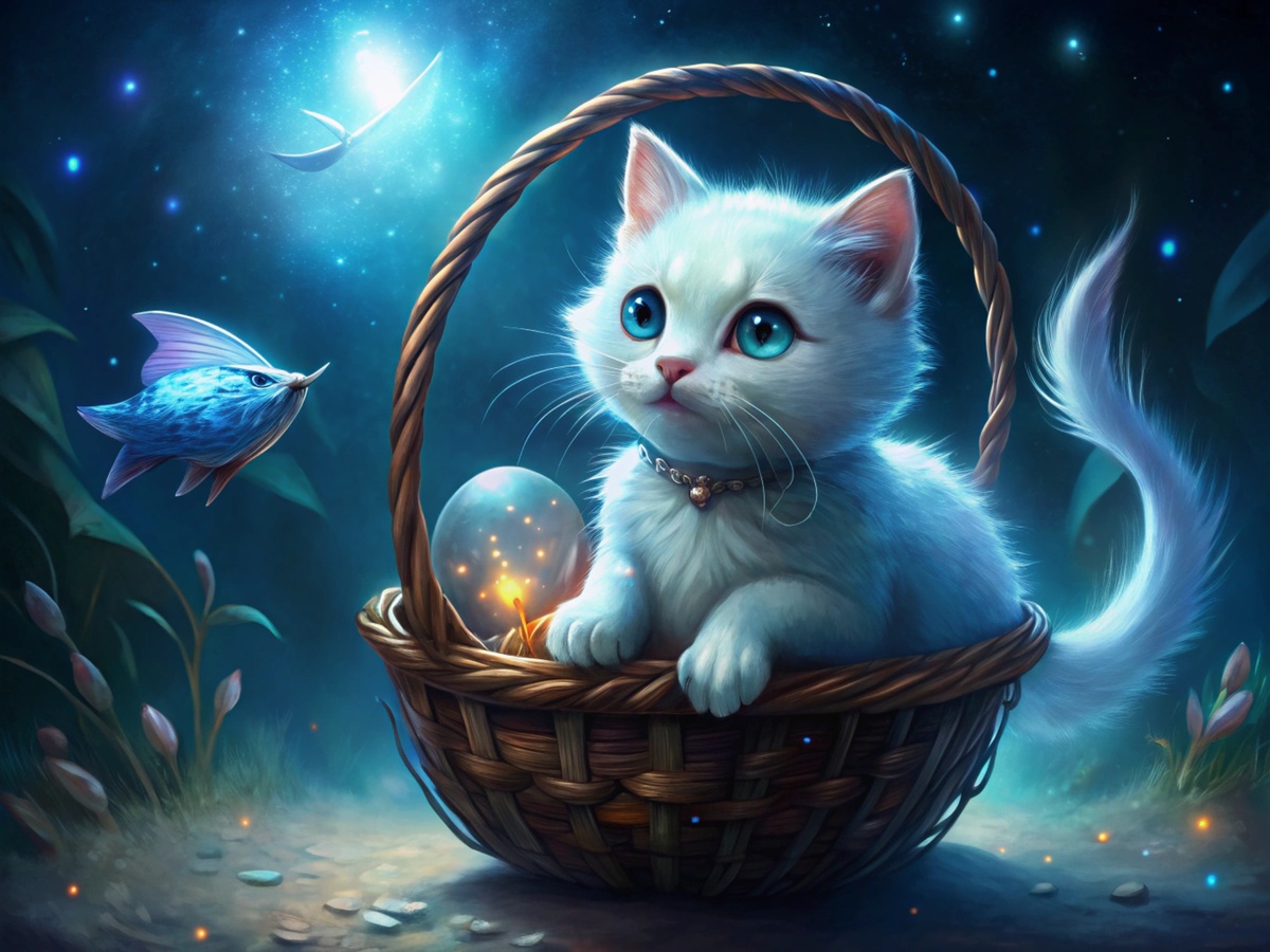 Жила в сказочном городке белая кошечка Мурка. У неё была волшебная плетёная корзинка, которая всегда оставалась полной вкусной рыбки. Но однажды корзинка стала пустеть. Мурка забеспокоилась и позвала на помощь хитрого кота Базилио, который славился своими магическими способностями. — О прекрасная Мурка! — мурлыкал Базилио. — Твоя корзинка заколдована злыми силами! Но я знаю заклинание! Дай мне семь золотых рыбок, и я всё исправлю! Доверчивая Мурка отдала коту свои последние сбережения. Базилио исчез, а корзинка стала совсем пустой. Загрустила Мурка. Пошла к мудрой сове Филине, которая жила в старом дубе и разбиралась в заклинаниях. По дороге встретился ей важный кот-полицейский Мяуфиций в синем кителе. — Стой, гражданка Мурка! — замяукал он строго. — Ты идёшь по газону! Здесь ходить нельзя! Мурка так расстроилась, что села прямо на траву и замяукала жалобно-жалобно. — Что случилось, кисонька? — удивился Мяуфиций, сразу ставший добрее. Рассказала Мурка про пропавшего Базилио и пустую ко