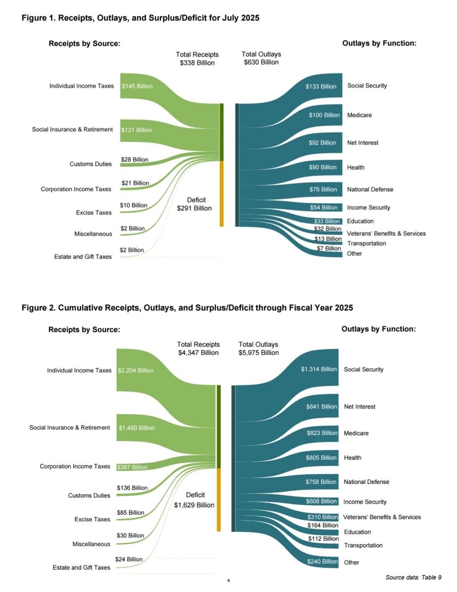 Этот поезд не остановить Месячный дефицит минфина США почти на $90 млрд больше прогноза несмотря на сборы от тарифов ~$30 млрд С начала фингода залезли за отметку $1.6 трлн Теперь понятно, почему длинный конец долга [к слову не только в Америке, гляньте ещё на самураев] опять трясет @marketheart
