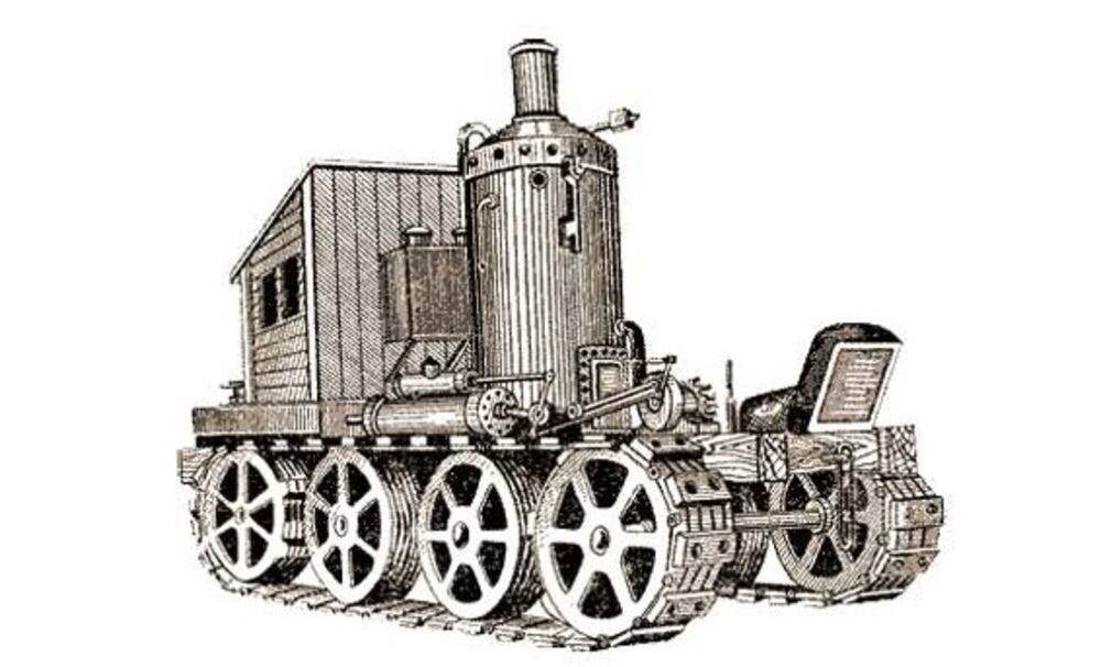 Первый в мире гусеничный трактор создал Фёдор Абрамович Блинов –русский изобретатель-самоучка. 27 марта 1878 года Федор Блинов подал заявку на получение патента на изобретенный им «вагон с нескончаемыми рельсами для перевозки грузов по шоссейным и просёлочным дорогам». В 1881 году изобретатель запатентовал своё изобретение. В 1887 году был представлен первый полноценно работающий гусеничный трактор. Конструктив: 5-метровая рама, посередине которой был установлен вертикальный паровой котёл высотой 1,5 м, изготовленный из трубы парохода. По бортам — две тихоходные паровые машины общей мощностью 20 л. с.. Звенья гусениц изготавливались из металлических пластин путём выпиливания. Привод от правой паровой машины шёл на правую гусеницу, от левой — на левую. Это позволяло давать разную скорость гусеницам и поворачивать трактор без дополнительных рулевых колёс. Управлять трактором должны были два человека: один находился спереди в будке и посредством рычагов управлял паровыми машинами, выбирал
