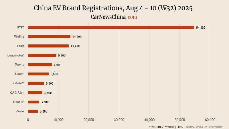 π Π ΠΠΈΡΠ°Π΅ ΠΏΡΠΎΠ΄Π°ΠΆΠΈ ΡΠ»Π΅ΠΊΡΡΠΎΠΌΠΎΠ±ΠΈΠ»Π΅ΠΉ: Onvo 3,200, Xpeng 7,900, Tesla 13,400, BYD 54,800.