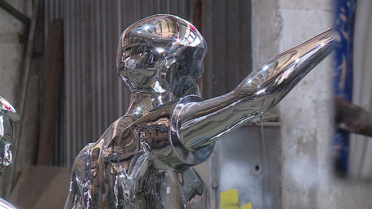 Настоящие произведения искусства из металла создает житель Волгограда Рустам Абдулаев. Мастер освоил технику полигональных фигур, его работы сегодня можно встретить в парках по всей стране, полюбились малые архитектурные формы и жителям Волжского. Сейчас в работе по-настоящему уникальные изделия. Фото: Станислав Дмитриев Даже в условиях производственного цеха эти скульптуры впечатляют. Но по-настоящему блистать они будут в парке, в лучах солнца и в окружении зелени. Как, к примеру, эти футболисты, их уже скоро отправят в Краснодар. Для мастера эта работа стала ювелирной. «Техника исполнения – чеканка, прессовка, выстукивание молотками, чтобы не было видно швов, зачистка, полировка до зеркального блеска. Получается такая малая архитектурная форма», – объясняет Рустам Абдулаев. «Насколько сложно выполнить такую фигуру?» – спрашивает корреспондент. «10 из 10!» «Довольны работой?» «Конечно, доволен» Такие зеркальные фигуры устанавливают по всему миру, а в последнее время стали очень популя