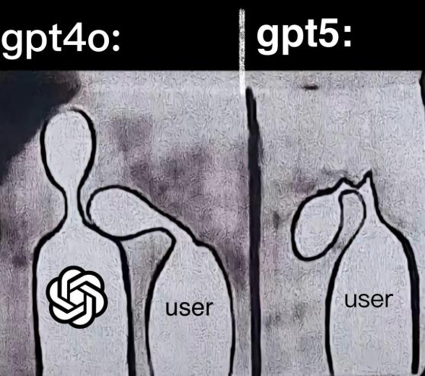 Крупная часть аудитории давно воспринимает модель не как «двигатель», а как «личность». GPT‑4o успел сформировать узнаваемую манеру: дружелюбие, эмпатия, естественный диалог. GPT‑5, наоборот, демонстрирует продуктивность и сдержанность.