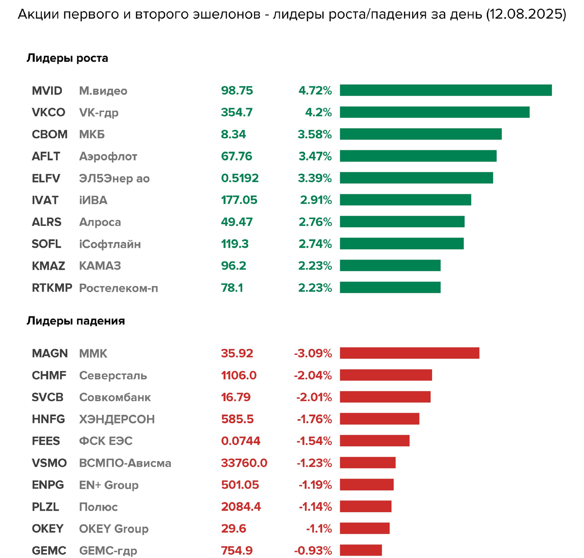 Всем привет! По итогам основной сессии 12 августа индекс Московской биржи прибавил 0,3%. Рынок замер в преддверии встречи Путина и Трампа. Но я не верю в позитивный для рынка результат, поэтому жду коррекцию в пятницу или уже в понедельник. Валюта все там же... А нефть уже 66 дол/барр. В связи со вчерашним "прогулом" публикую сегодня: Второй день освобождаюсь поздно вечером. Вчера после десяти часов, так как помогал родителям с переездом. Сегодня по работе поздно освободился и надо садиться готовиться к завтрашнему дню. Но решил, что второй прогул читатели не поймут. На бирже ничего сегодня не делал. Поставьте лайк и не забывайте подписываться на наш канал «Настоящий Миллионер» в телеграме, чтобы получать информацию еще быстрее, также можно поддержать автора оформив за 100 рублей в Дзене Премиум подписку, которая даст доступ к "закрытым" публикациям. А что сегодня покупали вы?
