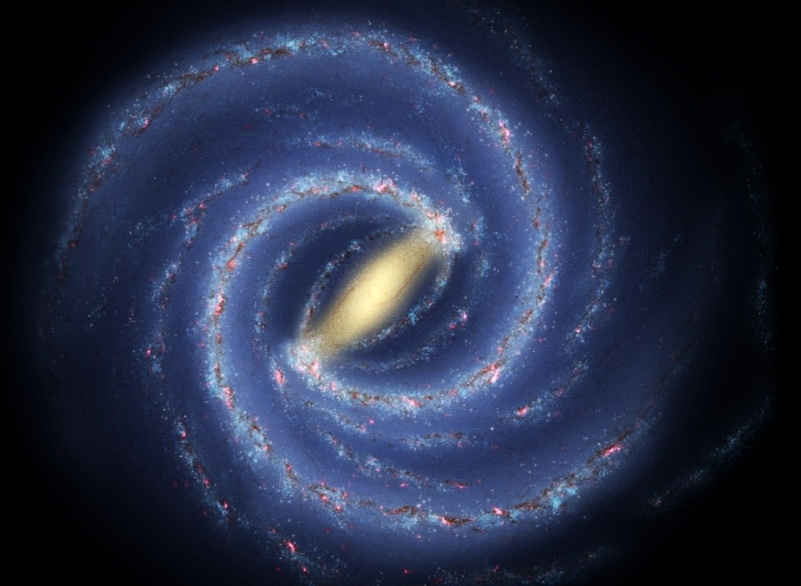 Наша спиральная галактика имеет 4 основных рукава и ядро с баром (перемычкой ). Размер диска - 100-120 тысяч световых лет