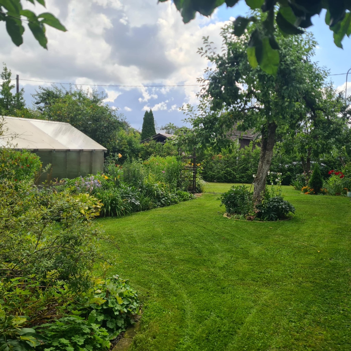 Как же быстро пролетает лето. Дни становятся всё короче, от белых ночей не осталось и следа. Это лето богато на дожди, хоть и короткие, но идут каждый день. Трава растёт как сумасшедшая, не успеваю косить. Сегодня был такой же день. Сначала покосила у мамы на даче, потом у себя. Падают яблоки. В предыдущие года падали от того, что не было воды, в этом, наверное, от того, что её много. Гниют прям на яблоне. Только уберёшь, как опять лежит целая куча. На компост выносятся вёдрами. Ночами температура опускается до 10 градусов, каждый день туманы и росы. Начинают портиться листья на огурцах, они у меня на улице, не в теплице. Но пока ещё что-то висит. Раз в 2 дня собираю штук по 12-15. Если бы нужно было что-то консервировать, то и не хватило бы. На продажу в этом году тоже ничего нет. Подвели холодный май и июнь. В теплице тоже зреет всё медленно, томатов меньше, чем в прошлые годы. Но на еду и заморозку хватит. Осень близко...