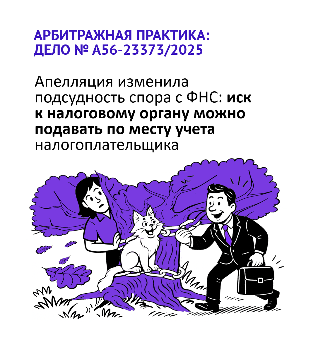 Аппеляция изменила подсудность спора с ФНС, разрешив оспаривать решение ФНС в суде своего региона, а не ехать туда, где находится проверяющий орган, дело № А56-23373/2025.