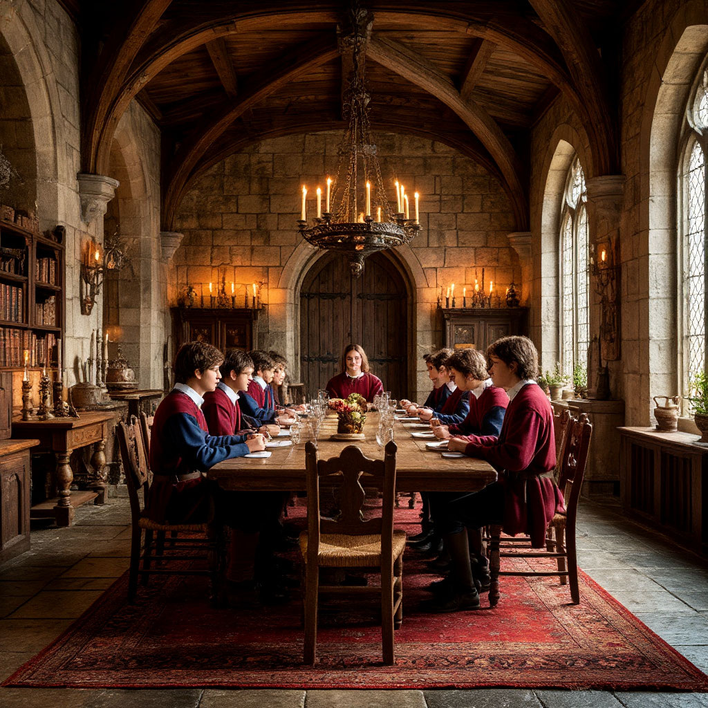 Столовая была на первом этаже в огромном зале, украшенном головами оленей и гобеленами. А еще она была разделена аркой на две секции: общий обеденный зал и буфет. По часам нам выдавали завтрак, обед и ужин. По выходным и праздникам еще полагался десерт. Не знаю, что за десерт, не знаю, я не попала ни на один праздник или выходной. А еще на столах постоянно стояли плетённые корзиночки с маленькими пресными булочками, заменявшими здесь хлеб. Булочек можно было брать сколько хочешь, что меня очень обрадовало. Если станет совсем голодно, можно хоть хлеба с водой пожевать.