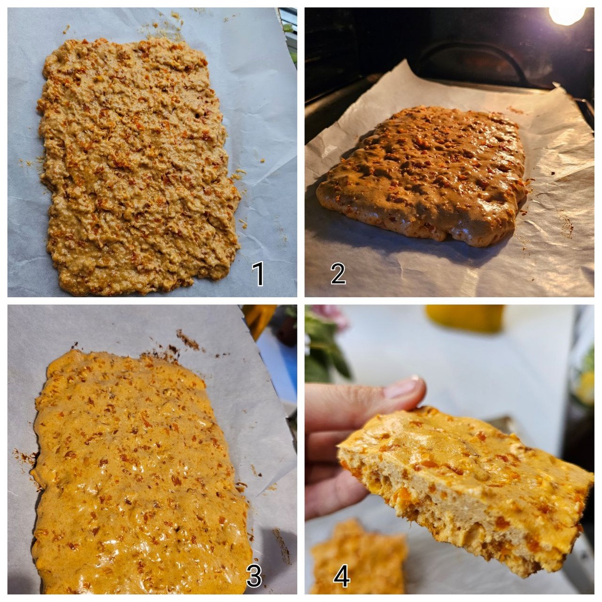 Очень простой рецепт протеиновых печений-батончиков, которые можно даже брать с собой. К чаю, кофе - 🔝 Сывороточный протеин (желательно без добавок) 100 гр Курага 100 гр Овсяные хлопья 25 гр Вода ~50-60 мл 1️⃣. Курагу залейте водой с 1 ч.л. соды минут на 15, чтобы очистить ее от всякой гадости. 2️⃣. Овсянку измельчите в муку в кофемолке или блендере. 3️⃣. Курагу измельчите с водой в чаше блендера. ❗️Воду очень осторожно добавлять, главное не переборщиить. Мне понадобилось 60 мл всего. 4️⃣. Смешать протеин, овсяную муку и курагу в миске. Масса будет липкая. 5️⃣. Выложить на силиконизированный пергамент или коврик слоем около 1-1,5 см. 6️⃣. Подсушить в духовке при температуре примерно 80-100°, не больше. Минут на 20. Затем дать остыть. 7️⃣. После остывания сделать надрезы и поломать на кусочки. Хранить лучше в закрытой ёмкости в холодильнике, чтоб не пересыхало. Готово! 👩🍳