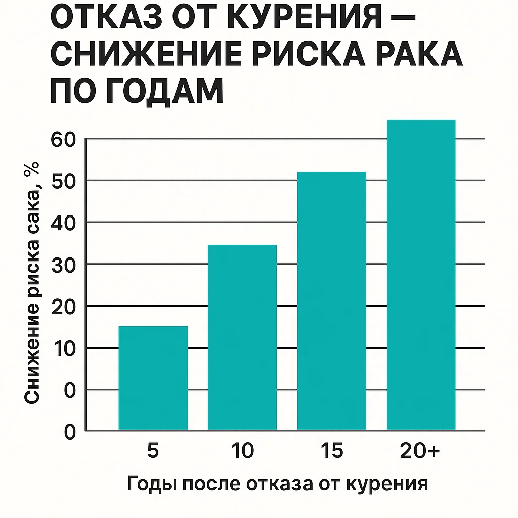 В опыте врачей встречаются люди, которые бросили курить — и через два года риск рака лёгких у них упал почти в два раза. Есть пациенты, у которых после отказа от алкоголя исчезали хронические воспаления желудка и кишечника. И наоборот, люди, перешедшие на электронные сигареты, иногда курят их вдвое чаще; общая доза никотина у них с годами только растёт. Это не способ безопасности, а просто вариант для затягивания процесса отказа. Один из моих пациентов несколько лет работал на производстве строительных смесей — эпизодически носил респиратор, но часто пренебрегал им. Через десять лет у него обнаружился рак мочевого пузы