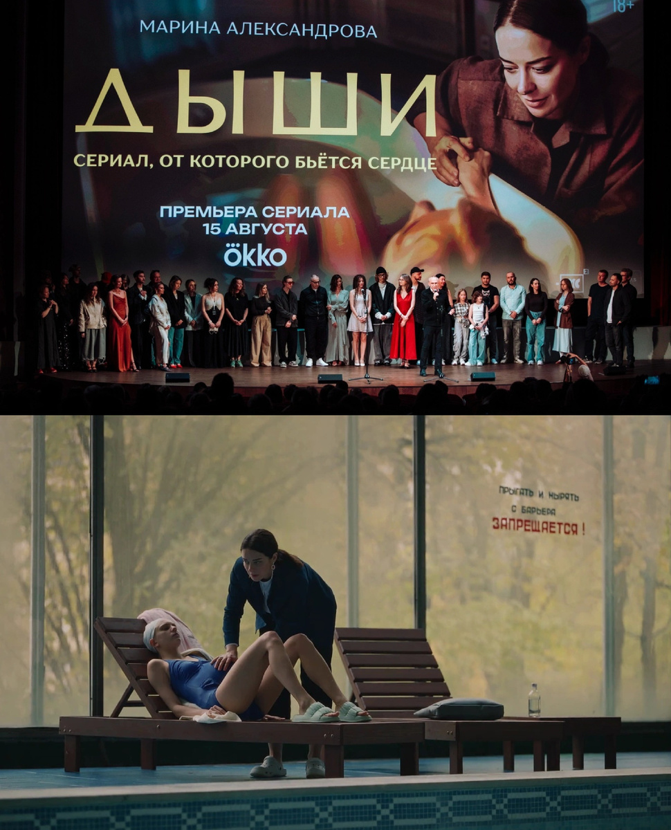 Марина Александрова в последнее время прямо получилас какое-то второе рождение как актриса. Несколько сериалов с ней были очень успешны - например, "Открытый брак" и "Последователи", "Точка ноль" - она там очень хороша, если не смотрели - запишите себе в планы, получите удовольствие. И вот в кинотеатре "Художественный" прошла премьера ещё одного сериала с актрисой в главной роли - он называется "Дыши". Александрова играет главную героиню - врача акушера, которая должна принять роды у девушки влиятельного олигарха, но что-то идёт не так, и с ребёнком возникают проблемы. Девушку играет Даша Верещагина - мы видели её в блокбастере "Сто лет тому вперёд" в роли Алисы из будущего. В общем зрителям будет, о чём попереживать и поволноваться. Ну а мы как обычно посмотрим и обсудим образы знаменитостей на премьере. Виновница торжества Марина Александрова была в интересном платье фисташкового оттенка. Мне в этом образе особенно понравились телесного оттенка лодочки - я вообще считаю, что это идеа