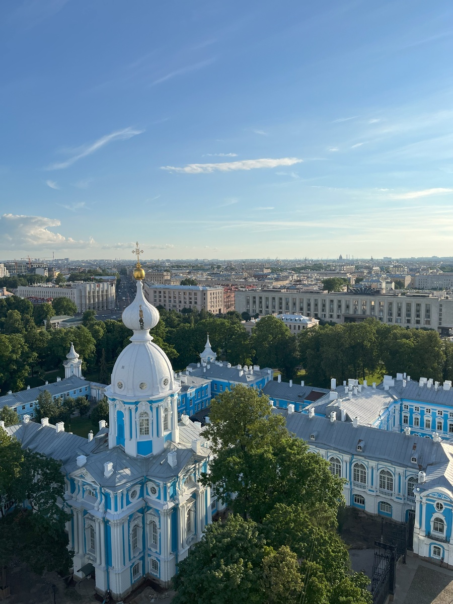 Высота и тишина. Сюда стоит подняться, чтобы увидеть красоту Смольного и широкие перспективы Невы. Особенно красиво в утреннем свете.