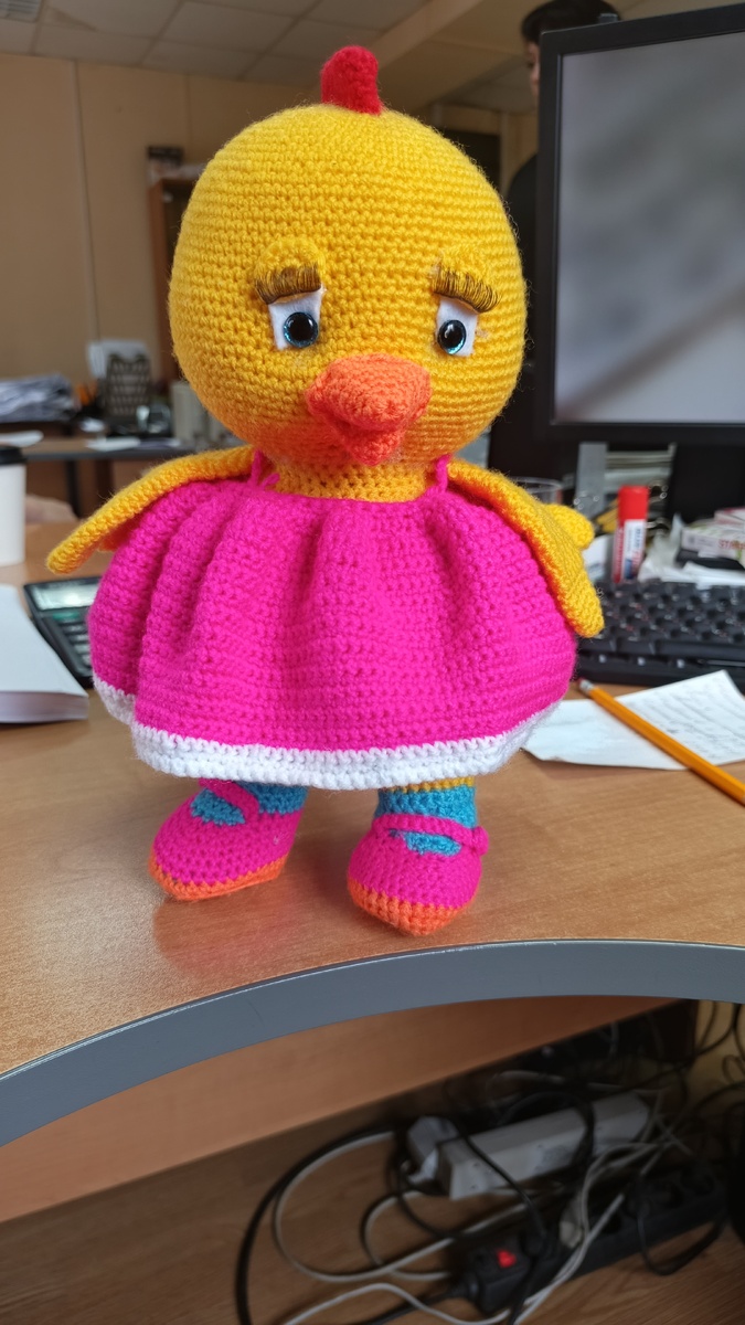 Связала вот такую очаровашку, цыпу в сарафане Описание нашла в интернете, скину ниже, если кого-то заинтересует Ну вот и все, можно сравнить с оригиналом, на мой взгляд похоже получилось.