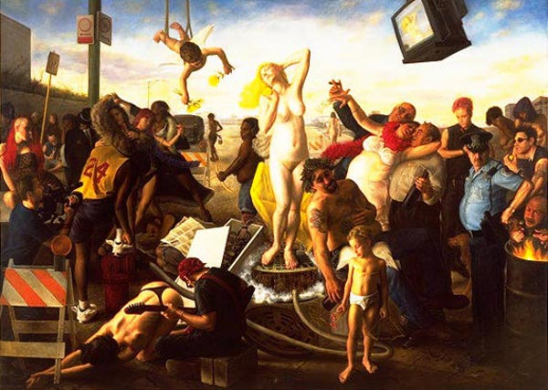 Бруно А. Сурдо — художник-реалист из Чикаго, рожденный в 1963 году, чья творческая практика выглядит как мост между классикой Возрождения и современным визуальным языком. Производя большие многофигурные композиции, он обращается к вечным темам человеческой природы, делая это с альтистической строгостью и эмоциональной напряжённостью, напоминающей старых мастеров, которыми он всегда восхищался. Корни и формирование искусства Сурдо — американец итальянского происхождения в первом поколении. Выросший в семье, где имена Микеланджело, Леонардо, Караваджо и Тициан звучали как норма, он рано впитал уважение к традиции изобразительного искусства. Эти влияния не стали для него слепой подражательной опорой: напротив, он переработал классические принципы в современный язык, где фигура — главный выразительный элемент. Изучая рисунок и историю искусства, Сурдо сконцентрировался на передаче анатомии, пластики и светотени, стремясь к той степени мастерства, которая позволяет говорить через тело и