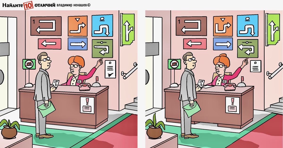10 отличий. Тест на внимание. Найдем нужную дверь и направление в рисунке. Позитив.
