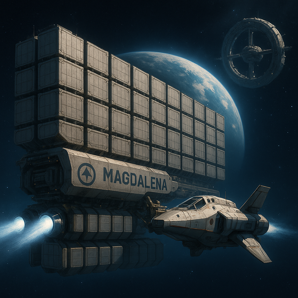В тот день подготовка очередного торгового судна шла по плану. Дэн на своем челноке пристыковался к грузовой платформе и на малых корабельных двигателях стал отчаливать от космической станции погрузки. В это время «Магда» по данным введенным в компьютер Дэном, рассчитала точку входа в подпространство. И, естественно точку выхода из него. При этом она ориентировалась на специальный маяк, передающий сигналы в подпространстве.