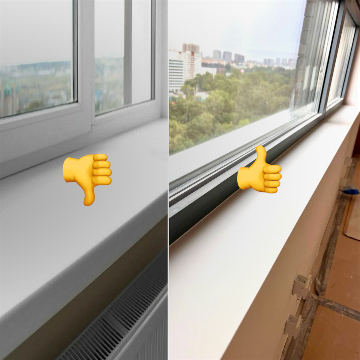 Если же ваши окна имеют нестандартные размеры, не стоит отчаиваться. Современный рынок предлагает большой выбор широкоформатного керамогранита различных размеров (мах 3200 *1000 мм), что позволит подобрать идеальный вариант для любого проема.
