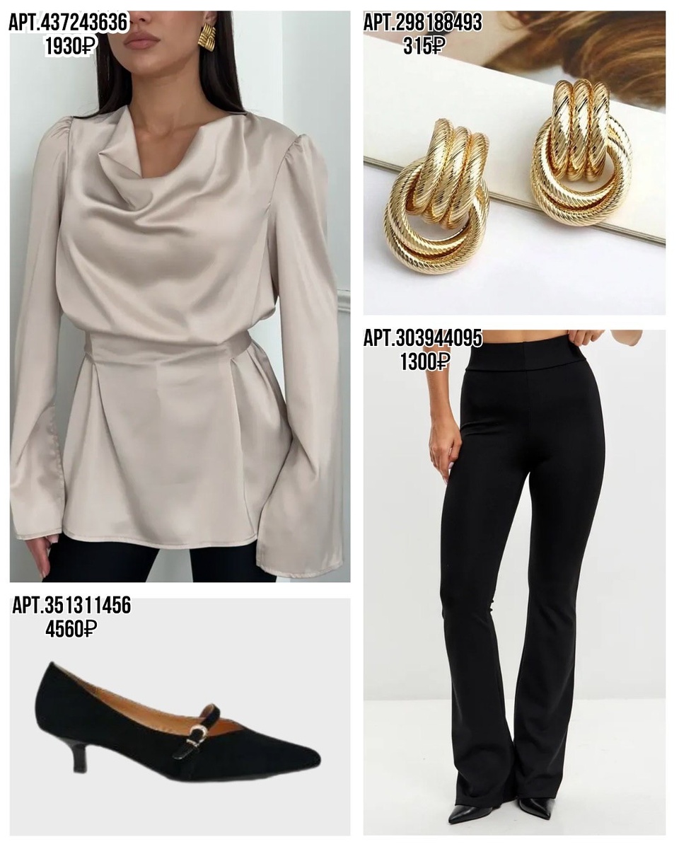 Образ 1 — сатиновая элегантность и идеальные брюки