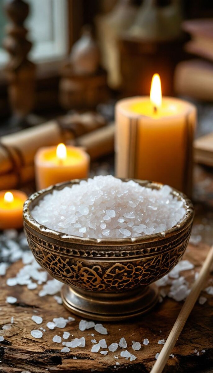 + Концентрация: Соль может усиливать концентрацию и фокусировку во время ритуалов и медитаций.