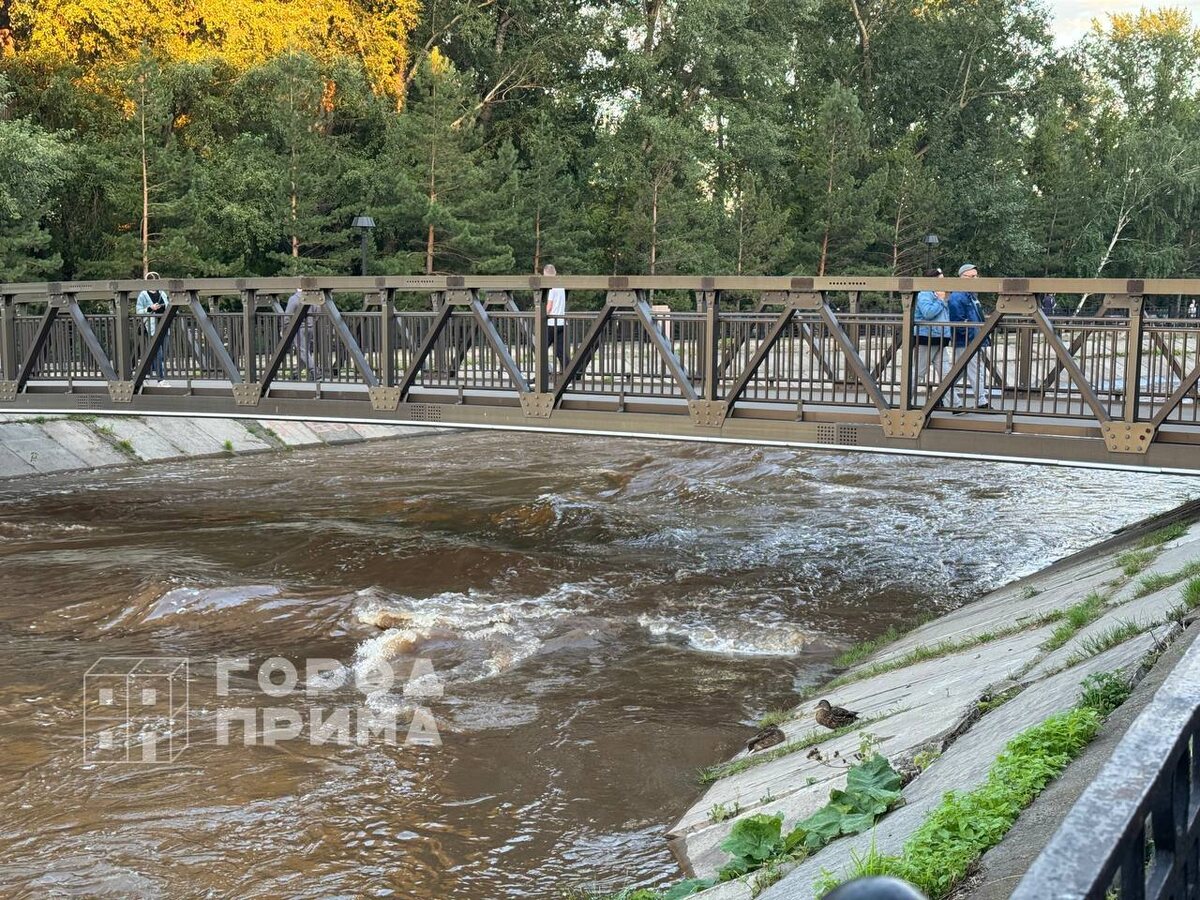 Поднявшуюся реку видно в районе сквера Юдина и улицы Обороны. До пешеходных и автомобильных мостов вода не доходит чуть более метра. Красноярцы рассказали, что с момента весенних паводков не видели такого бурного течения в Каче.
