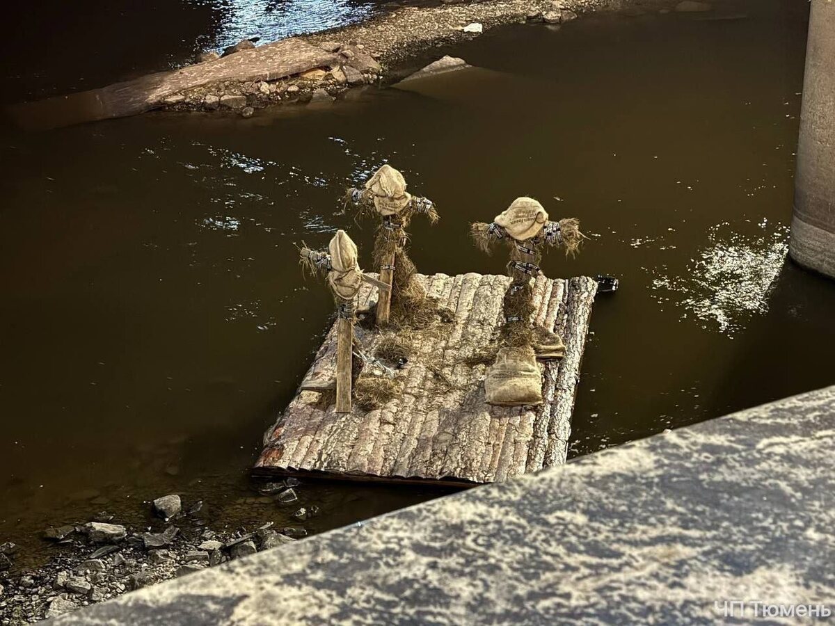 😳 Дрейфующий плот с тремя чучелами заметили ночью на набережной в Тюмени