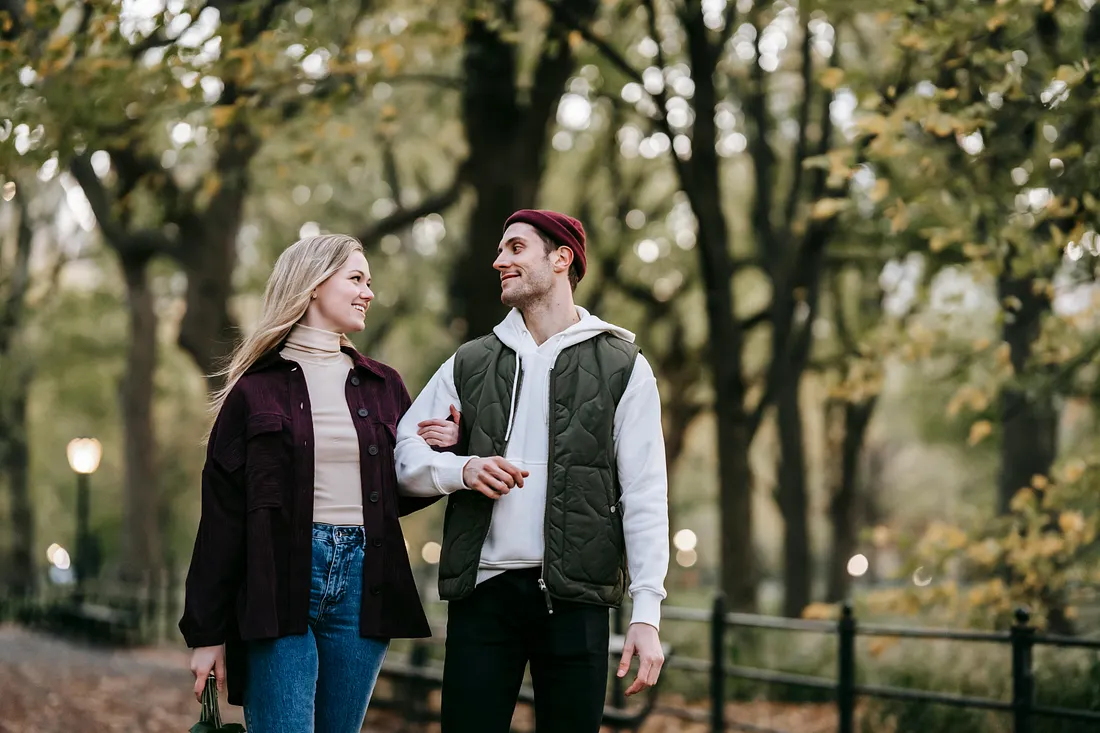 Я мгновенно превращаюсь из каменного лица в улыбающегося — и только она одна когда-либо видела эту мою сторону. Счастливая пара прогуливается по парку в яркий солнечный день, обмениваясь тихими смешками и лёгкими шагами.