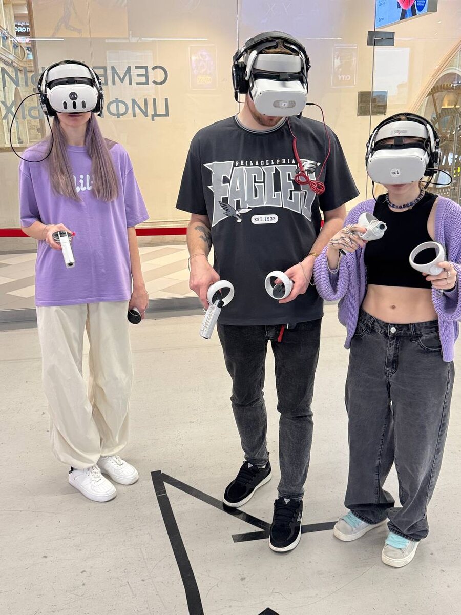 Такой командой ходили играть в VR ANVIO, постреляли в зомби прошли миссию Moscow City