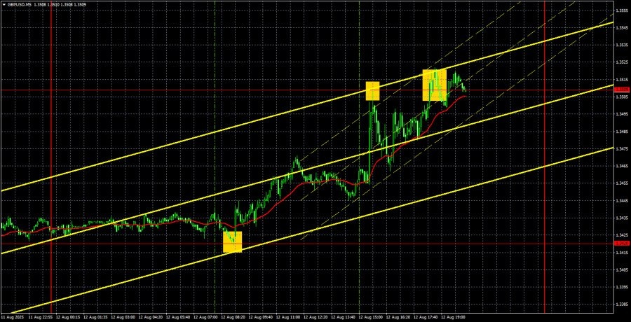 https://basechop.ru/wordpress/?p=53738 Анализ GBP/USD 5М. Валютная пара GBP/USD в течение вторника также торговалась с повышением, но основанием для такого движения послужил не только отчет по инфляции в США, но еще и британская статистика. Мы не можем сказать, что британские отчеты получились распрекрасными, но они не провалились, как это часто бывает, что уже хорошо. Количество заявок на пособия по безработице оказалось даже отрицательным. Таким образом, фунт стерлингов начал закономерно расти с самого утра, сохраняя восходящую тенденцию на часовом ТФ. Об отчете по американской инфляции мы уже говорили. Его значение не имело никакого значения для будущего решения ФРС по ставке, но в то же время низкая инфляция повышает вероятность смягчения монетарной политики не только в сентябре. С технической точки зрения, все тоже выглядит идеально. Восходящая тенденция на часовом ТФ является частью восходящего тренда на дневном ТФ, который формируется с начала года. Таким образом, учитывая…