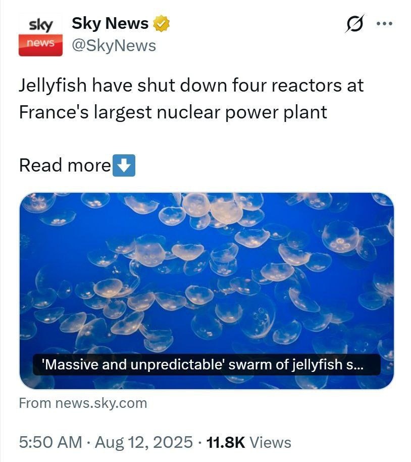 🇫🇷 Медузы парализовали работу крупнейшей АЭС во Франции