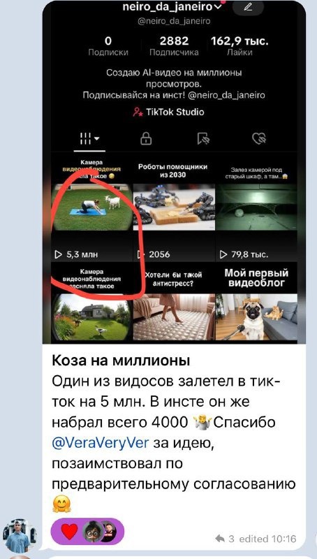 🚀 СОЗДАЁМ ВДОХНОВЕНИЕ ВМЕСТЕ — КЛУБ НЕЙРОСЕТКИН Каждый день идеи и поддержка от активных участников! Вот, к примеру, видео Виталия набрало 5 млн просмотров в TikTok — а идея была изначально чужая, подсмотренная у другой участницы клуба. Так работает формула: сообщество + креатив + действие. В чате — обмен опытом, обратная связь, конкурсы и заработок на нейросетях. Я сам шёл к успеху кирпичик за кирпичиком, и этот клуб — для тех, кто хочет расти. В августе стартует новый сезон! Уроки, идеи, поддержка — бери и действуй. Вход — neirosetkin.ru Смотри видосик — всё наглядно. Что думаешь? Пиши в комменты! #Neirosetkin | ВСЁ ПРО AI | AI NEWS | Дзен | ОК
