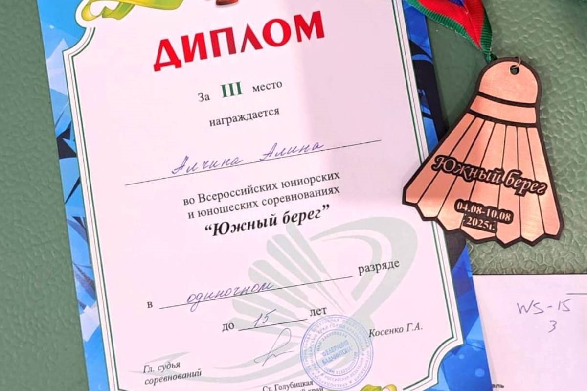 Алина Алчина завоевала бронзовую медаль в одиночном разряде. С 4 по 10 августа в станице Голубицкая Краснодарского края прошли всероссийские соревнования по бадминтону «Южный берег» среди юношей и девушек до 11, 13, 15, 17 и 19 лет. Награды в одиночном, смешанном и парном разрядах оспаривали около 300 участников из 24 субъектов РФ. Тверскую область на этом турнире представляла воспитанница СШОР по игровым видам спорта (Тверь) Алина Алчина. Перед турниром тверичанка приняла участие в составе 32 юных бадминтонистов в недельных сборах на Азове, которые были очень необходимы для того, чтобы войти в форму после летнего июльского перерыва, почувствовать зал, его объём, освещение, войти в турнирный ритм. Посеянная на «Южном береге» на 9-16 позициях, Алчина преподнесла одну из сенсаций соревнований. В одиночном разряде среди девушек до 15 лет Алина завоевала бронзовую медаль. Больше того, спортсменка из Твери вошла в ТОП-8 в смешанном разряде до 19 лет и в парном разряде до 17 лет. – В конце у