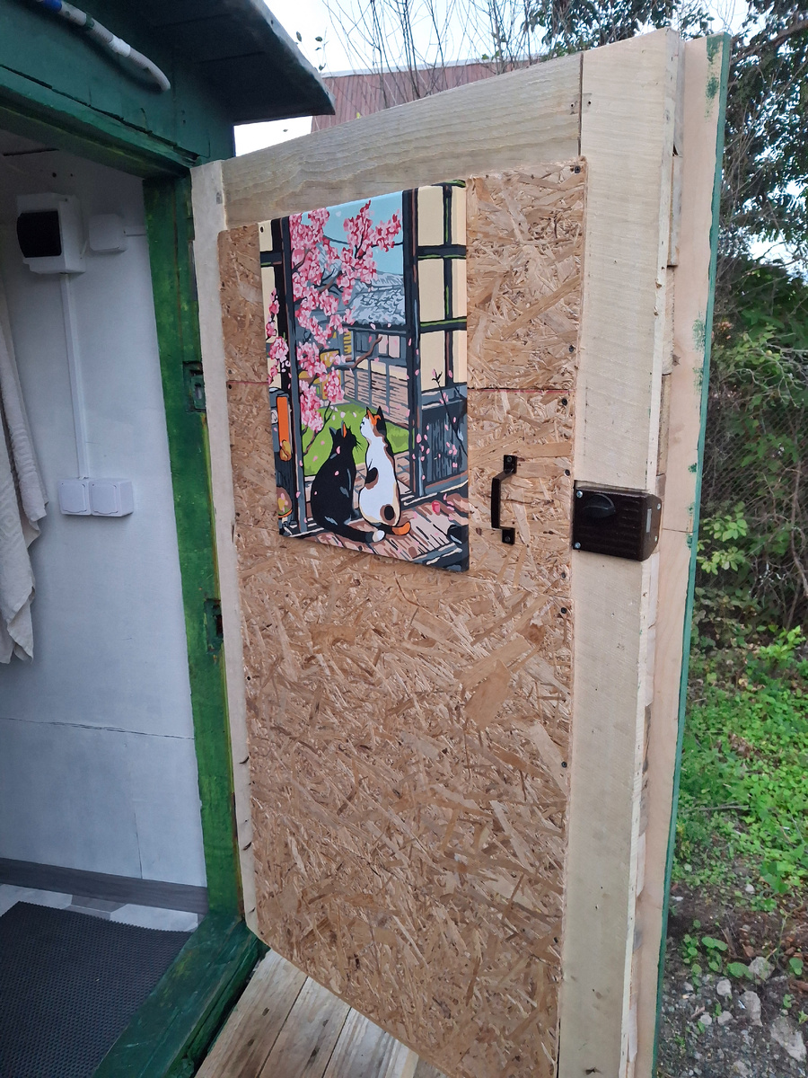 🚪 Как мы собрали новую дверь для бытовки В нашей бытовке старая дверь совсем изжила себя — перекосилась, пропускала ветер, а в щели можно было увидеть улицу. Решили: хватит терпеть, пора делать новую дверь своими руками. 1. Подготовка и замеры Сначала мы сняли старое полотно, зачистили проём и тщательно всё замерили. Учли зазоры, чтобы новая дверь легко открывалась. 2. Заготовка каркаса Взяли доску 100×25 мм и отпилили заготовки по размерам. Собрали прямоугольную раму, проверяя диагональ чтобы не было перекоса. Разметили и прикрутили две мощные петли. 3. Обшивка и установка замка. Сначала зашили одну сторону доской 100×25, установили накладной замок, Потом зашили вторую сторону. Установили новые ручки. И почти дверь готова! 5. Отделка Покрасили дверь снаружи в цвет бытовки. Получилось и практично, и симпатично. Всё встало идеально: дверь не цепляет пол, плотно прилегает к коробке, а главное — в бытовке стало теплее и тише. Вывод: за один день и с минимальными затратами мы сделали пр
