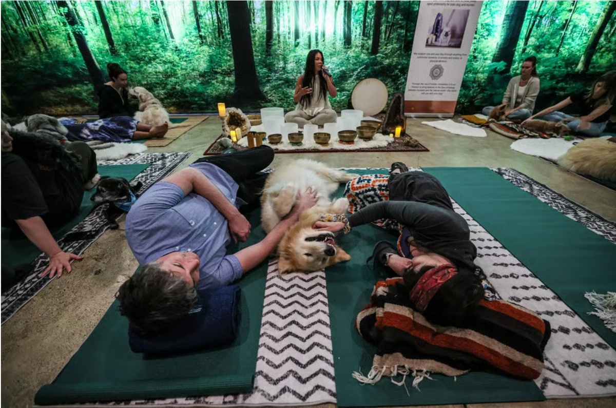 Спа, рейки и лимузин: собачий люкс по-лос-анджелесски В Лос-Анджелесе индустрия ухода за собаками давно вышла за рамки привычного груминга. Сегодня это полноценный сегмент люксового велнеса с ассортиментом услуг, сопоставимых с человеческими спа-программами. Ветеринарно-ориентированные предложения включают акупунктуру, гидротерапию и хиропрактику. На «премиальной» стороне — массажи, медитация рейки, светотерапия, уход за кожей и когтями («pawdicure»), а также опции вроде «лесных купаний» или консультаций у pet psychic. Звуковые ванны Студии предлагают групповые «релаксационные концерты» с поющими чашами, океанскими барабанами и приглушённым светом. Программы адаптированы для собак: до 30 минут, с низкими тонами, которые, по словам организаторов, помогают снизить тревожность. Акватренировки Частные центры с подогретыми бассейнами (около 29,5 °C) и водными беговыми дорожками работают по принципу профилактики: тренировки без ударной нагрузки укрепляют мышцы, улучшают кровообращение