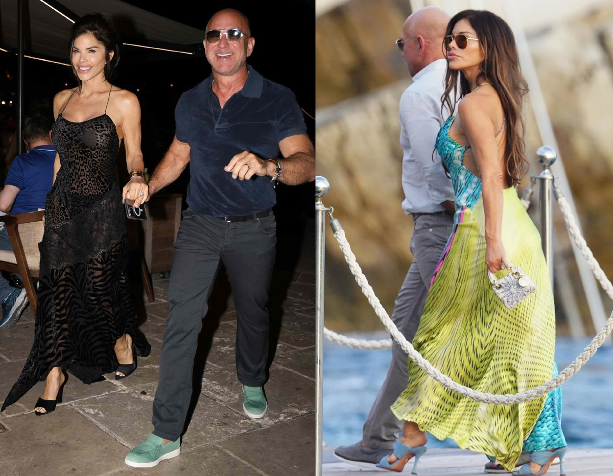 Свадьба в Венеции — и сразу курс на «киношную» роскошь. Первая остановка — Taormina, тот самый Сан-Доменико Палас из White Lotus. Что работает в паре? У Джеффа — спокойные поло и брюки (нейтральный фон), у Лорен — выразительные силуэты. Контраст характеров считывается мгновенно: он — минимализм, она — драматичный фокус. Дальше — Французская Ривьера. . На ней шёлковое платье-макси и редкая Lady Dior в микроформате. Ключ к образу: мягкое движение ткани + маленькая «иконка»-сумка как центр композиции. Это идеальная модель дневного выхода на люксовом курорте: цвет платья делает кадр «дорогим», а мини-аксессуар задаёт тон и не перегружает силуэт. Правило для клиенток: если платье играет фактурой и длиной, сумку берём маленькую и коллекционную — она «держит» образ, но не спорит с ним. В Сен-Тропе Лорен показывает два рабочих приёма. Днём — тотальный чёрный: боди, прозрачная многослойная юбка, широкополая шляпа. Приём «Beach Goth» вытягивает фигуру и прячет лишнее за счёт монохрома и вертик