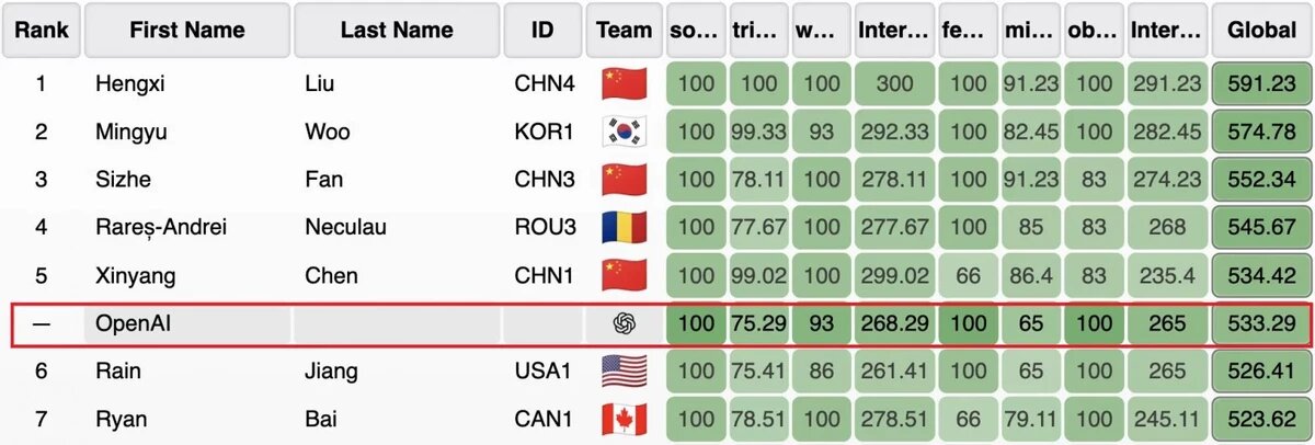 Продукт OpenAI взял «золото» на олимпиаде по информатике среди ИИ и шестое место среди людей