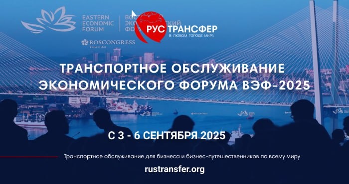 Юбилейный Х Восточный экономический форум состоится 3-6 сентября 2025 года во Владивостоке на территории кампуса Дальневосточного федерального университета. ВЭФ – ключевая международная площадка для создания и укрепления связей российского и мирового инвестиционного сообщества, всесторонней экспертной оценки экономического потенциала российского Дальнего Востока, представления его инвестиционных возможностей и условий ведения бизнеса на территориях опережающего развития. Компания Рустрансфер возьмет на себя организацию транспорта для гостей и участников форума ВЭФ 2025. Мы обеспечим ваш комфорт: - Трансферы (седаны, минивэны, автобусы) - Бронирование авиабилетов - Организация проживания в отелях Почему выбирают нас? - Профессиональные водители - Круглосуточная поддержка - Гибкие условия сотрудничества Доверьте логистику профессионалам – сосредоточьтесь на бизнесе, а мы позаботимся о вашем комфортном перемещении! rustransfer.org vip.rustransfer.org bus.rustransfer.org info@rustran