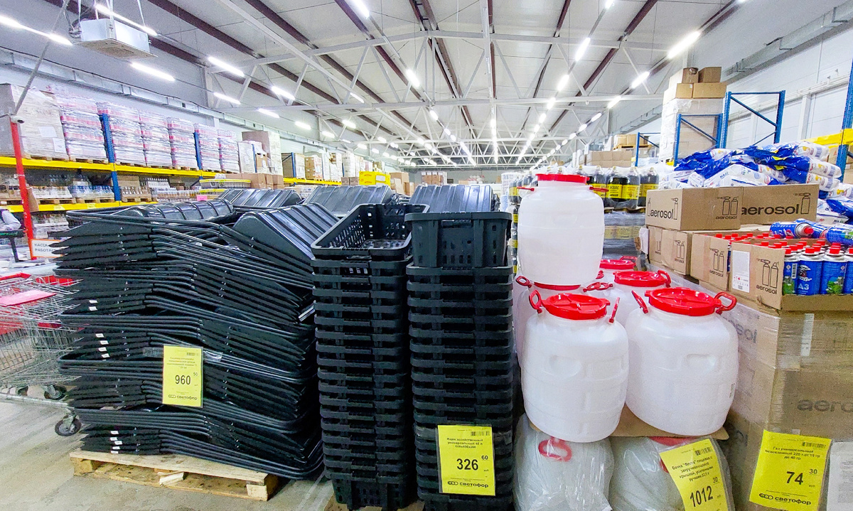 Встречает целая гора скреперов, у самого входа в Светофор. Они крайние слева в ряду товаров.