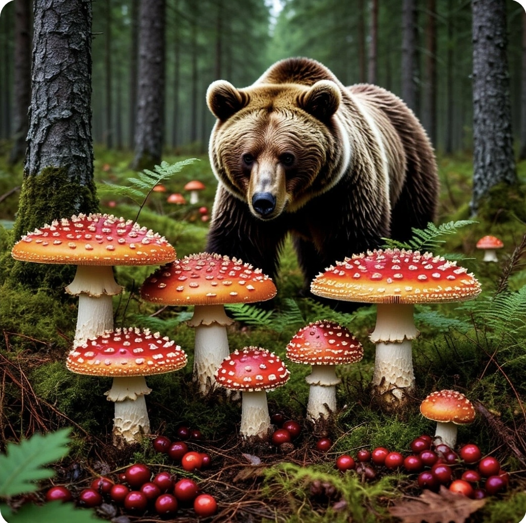 Пытаюсь я, значит, вылезти, руками землю гребу, а сам уже думаю: "Ну всё, приплыл, грибник из меня так себе". И тут слышу – треск веток! Сердце в пятки ушло. Думаю, ну всё, сейчас меня тут кто-нибудь съест. И тут из-за кустов выходит… медведь! Огромный такой, бурый, глазами сверкает.