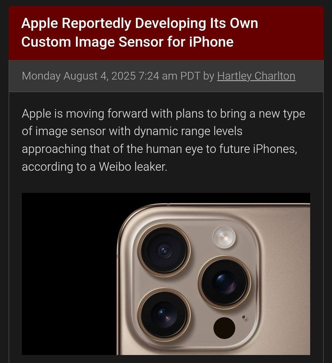 Apple тестирует камеру с динамическим диапазоном 20 стопов — это почти как у человеческого глаза.