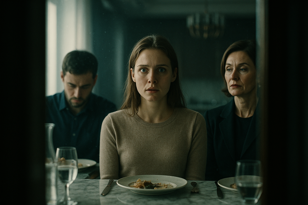 Я перевела взгляд на Родиона. Он сидел, опустив голову, и молчал. Он не сказал ни слова в мою защиту. Не сказал: «Мама, прекрати!». Не сказал: «Я люблю её, и мне всё равно, какой у неё уровень». Он просто молчал. И это молчание было оглушительнее её жестоких слов.