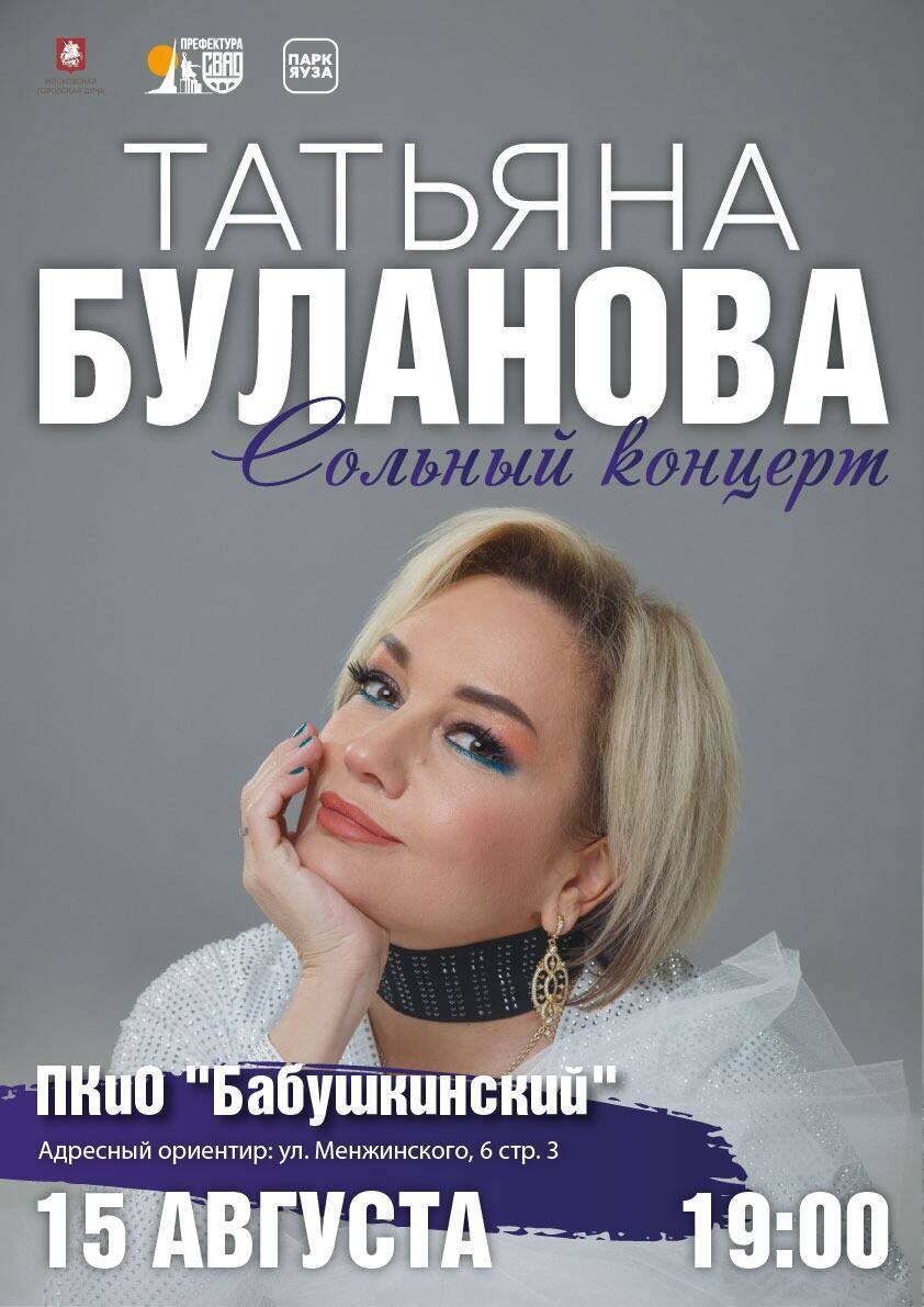 Готовься к настоящему музыкальному урагану с легендой российской сцены — Татьяной Булановой! Ее хиты знают все, а голос пробирает до мурашек. Этот вечер — шанс окунуться в атмосферу 90-х и почувствовать настоящий драйв!