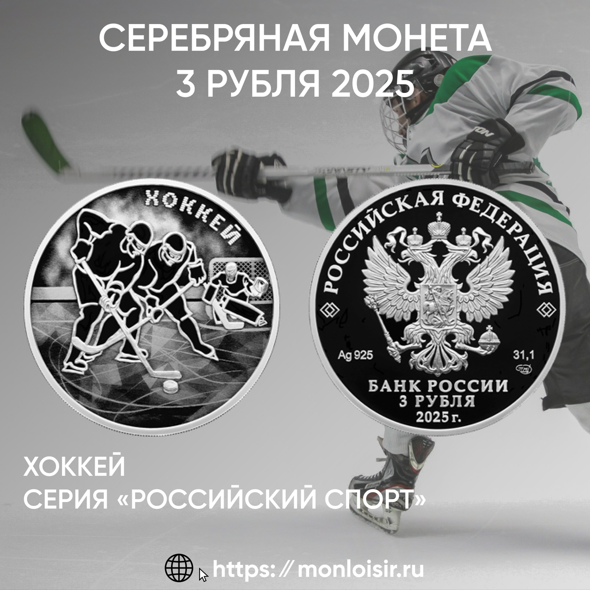 Хоккейная слава России в серебре! Новый релиз в серии Российский спорт - монета 3 рубля 2025 Хоккей