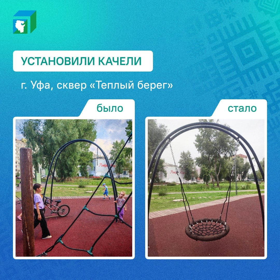 В уфимском сквере «Теплый берег» на детской площадке восстановили качели