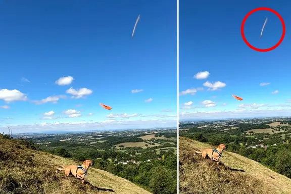 2 августа 40-летний Эндрю Клифтон бросал фрисби своему 5-летнему лабрадору по кличке Дэш в Малверн-Хиллз, недалеко от Вустера, когда в небе вспыхнул неопознанный летающий объект, сообщает Gloucestershire Live. Видео, воспроизведенное на полной скорости, демонстрирует небольшой проблеск под облачным небом, появляющийся менее чем на долю секунды и едва заметный невооруженным глазом. Однако при замедленном воспроизведении видно, что объект имеет цилиндрическую форму ракеты с синим колпачком на заднем конце. По данным SWNS , клип был опубликован в группе UFO в Facebook и на сайте X и набрал более 7 миллионов просмотров. Хотя некоторые были уверены, что объект представляет собой инопланетную технологию, Клифтон поделился мнением, что объект может быть высокотехнологичным военным проектом, сообщает SWNS. Неподалеку от живописного места в городе Вустер располагается база Королевских военно-воздушных сил Англии.