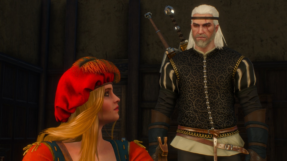 Геральт застал трубадуршу, грустно сидящую возле окна в номере «Зимородка». Измученная томительным ожиданием новостей и переживаниями о возлюбленном, она пребывала в глубоко минорном расположении духа и даже не поднялась навстречу со стула, увидев на пороге ведьмака.