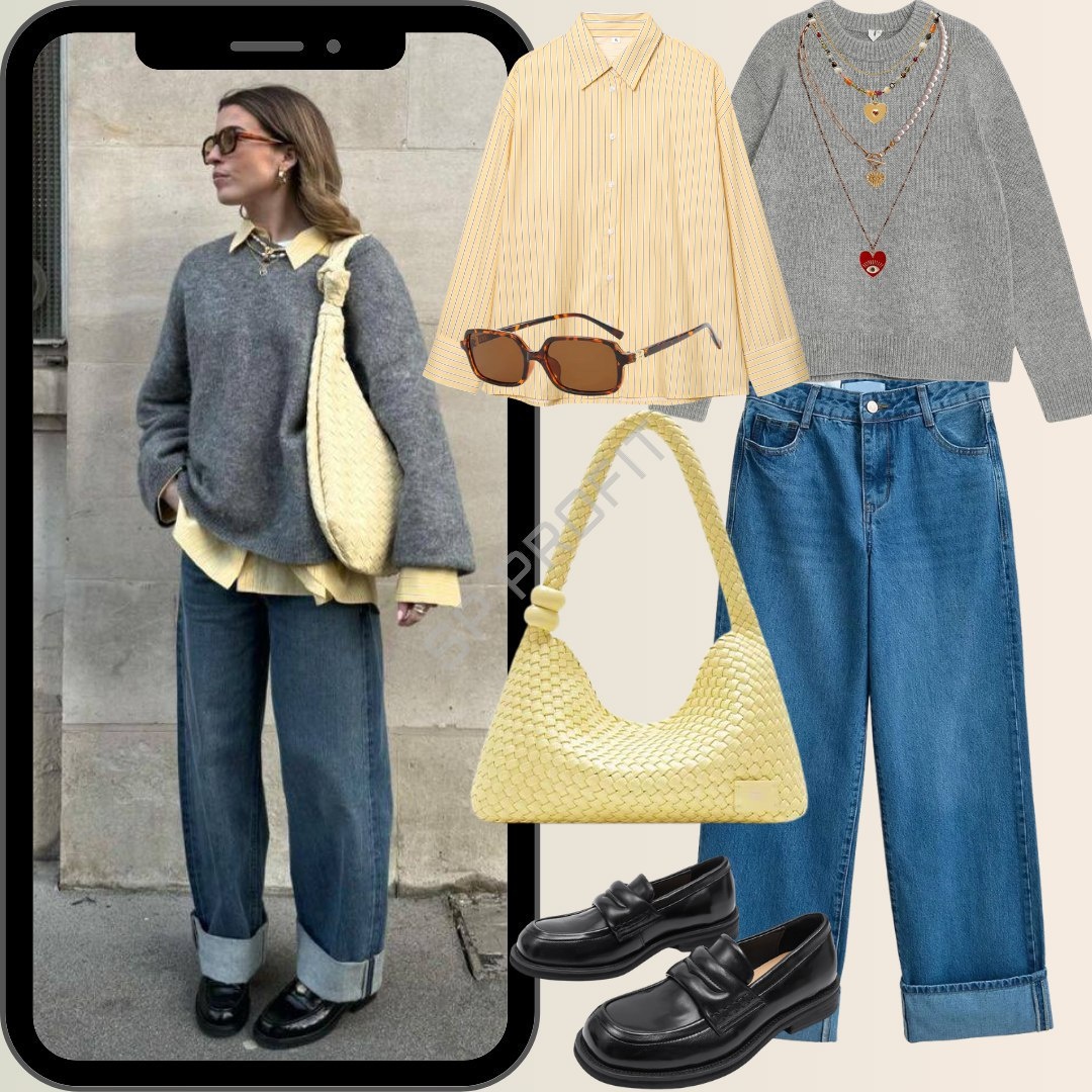 #лукдня Сегодня составили подборку образа, который идеально подходит для прохладной погоды и повседневных дел. ✨ Основа образа: ➡️Свитер серого цвета с объемными рукавами — уютный и практичный выбор. ➡️Рубашка в желтую полоску добавляет яркости и делает образ более интересным. ➡️Джинсы прямого кроя с подвернутыми краями — классика, которая всегда в тренде. 🎯 Финальные штрихи: ➡️Сумка желтого цвета с плетеной текстурой — стильный акцент, который дополняет образ. ➡️Очки с коричневой оправой — практичный аксессуар для солнечных дней. ➡️Обувь — черные лоферы, которые добавляют элегантности и комфорта. ➡️Украшения — многослойные цепочки с кулонами, включая сердечко, придают образу индивидуальность. 💡 Почему этот образ особенный: ➡️Универсальность — подходит для прогулок, встреч с друзьями или работы. ➡️Комфорт — сочетание мягких тканей и удобной обуви. ➡️Стиль — сочетание текстур и цветов делает образ запоминающимся. Заказ образа ⬇️ Свитер 2140₽ + доставка XS,S,M,L,XL Джинсы 1536₽ +